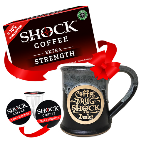 $42.99$45.99Perfect for the daily coffee drinker, this bundle includes a 1 lb ground bag of our signature Shock brew paired with our limited edition 14 oz ceramic mug. Products included: GROUND 1LB BAG 14OZ "Coffee is my drug. Shock is my drug dealer." CERAMI...